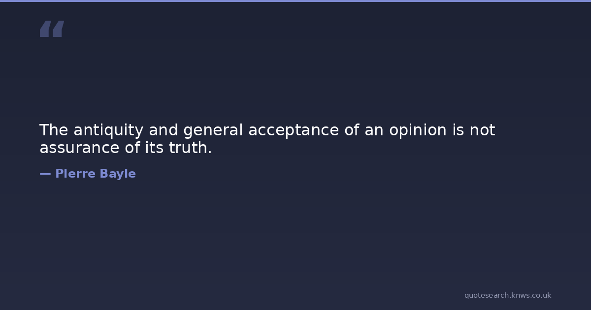The antiquity and general acceptance of an opinion is not assurance of its truth. Acceptance Opinion General Download Image Share on X Share on Facebook Copy Link