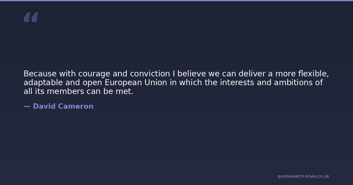 Because with courage and conviction I believe we can deliver a more flexible, adaptable and open European Union in which the interests and ambitions of all its members can be met.