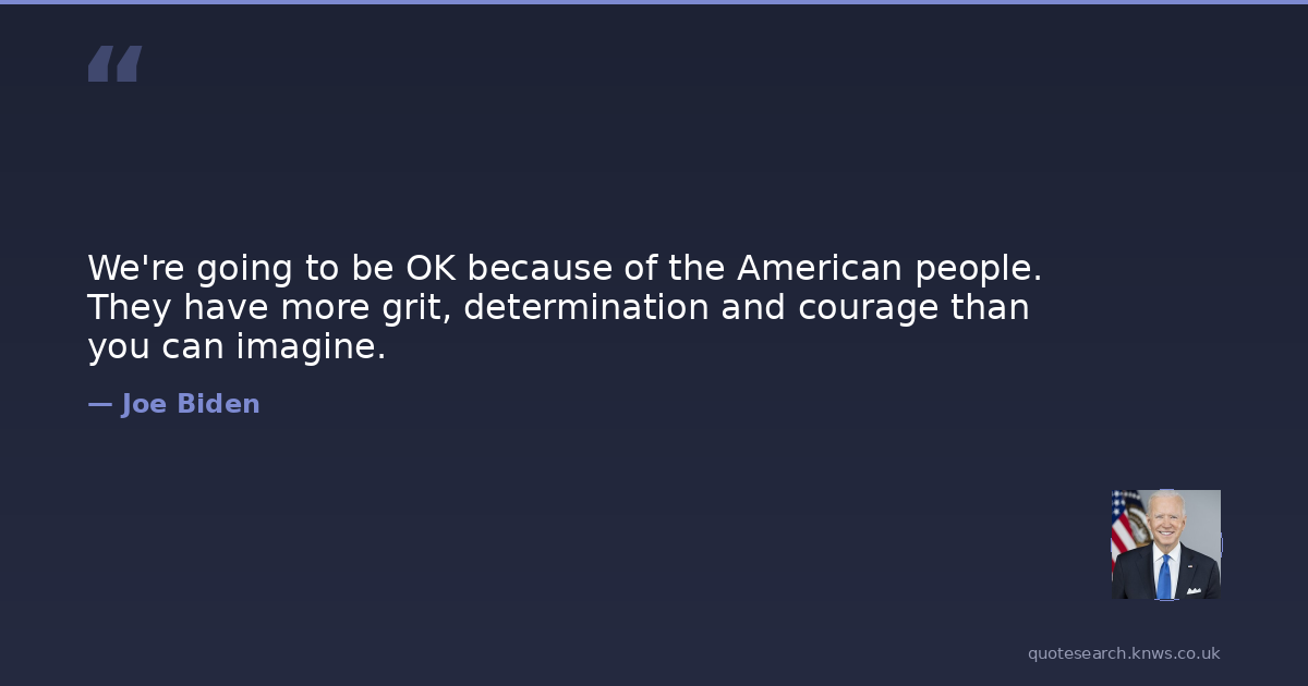 We're going to be OK because of the American people. They have more grit, determination and courage than you can imagine.