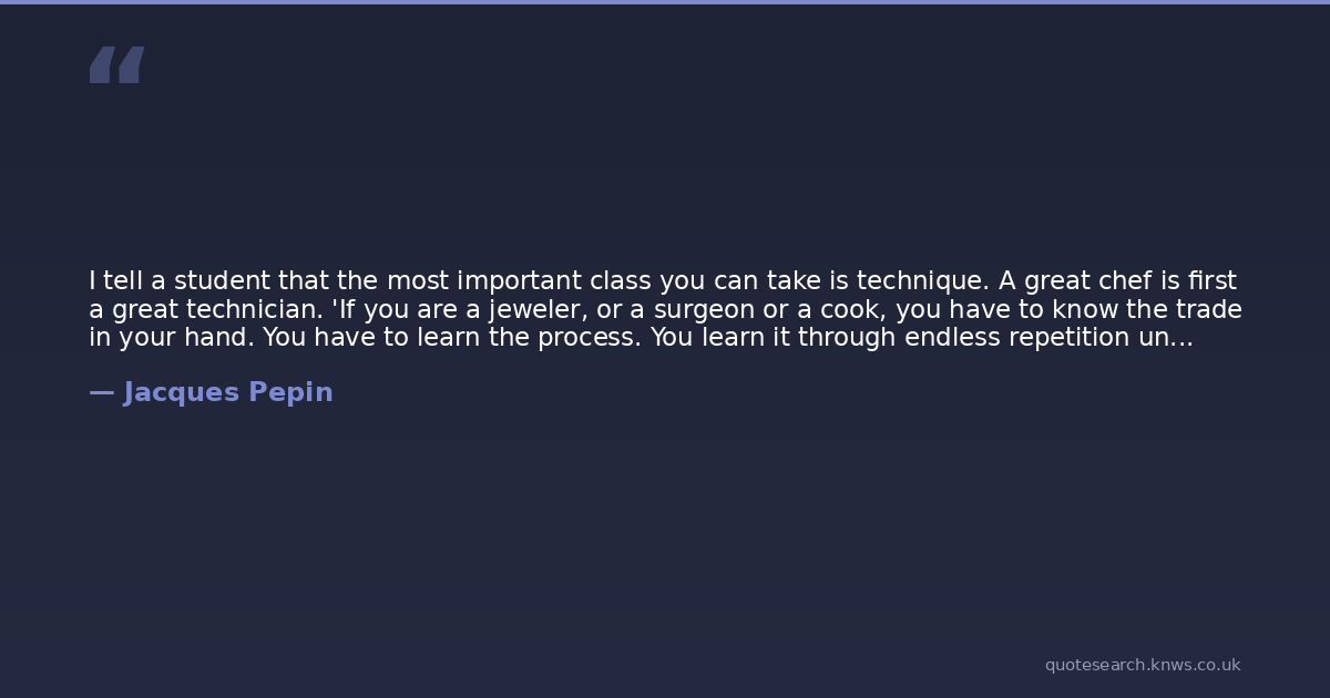 I tell a student that the most important class you can take is technique. A great chef is first a great technician. 'If you are a jeweler, or a surgeon or a cook, you have to know the trade in your hand. You have to learn the process. You learn it through endless repetition until it belongs to you.