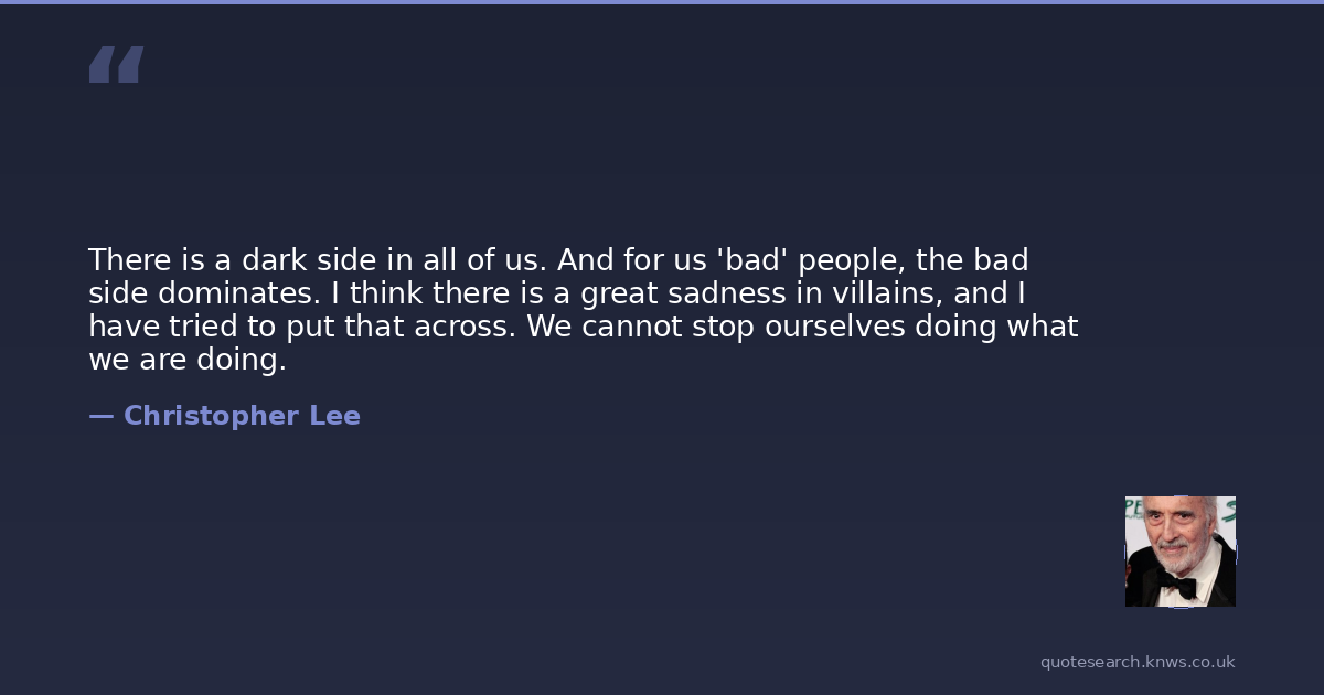 There is a dark side in all of us. And for us 'bad' people, the bad side dominates. I think there is a great sadness in villains, and I have tried to put that across. We cannot stop ourselves doing what we are doing.