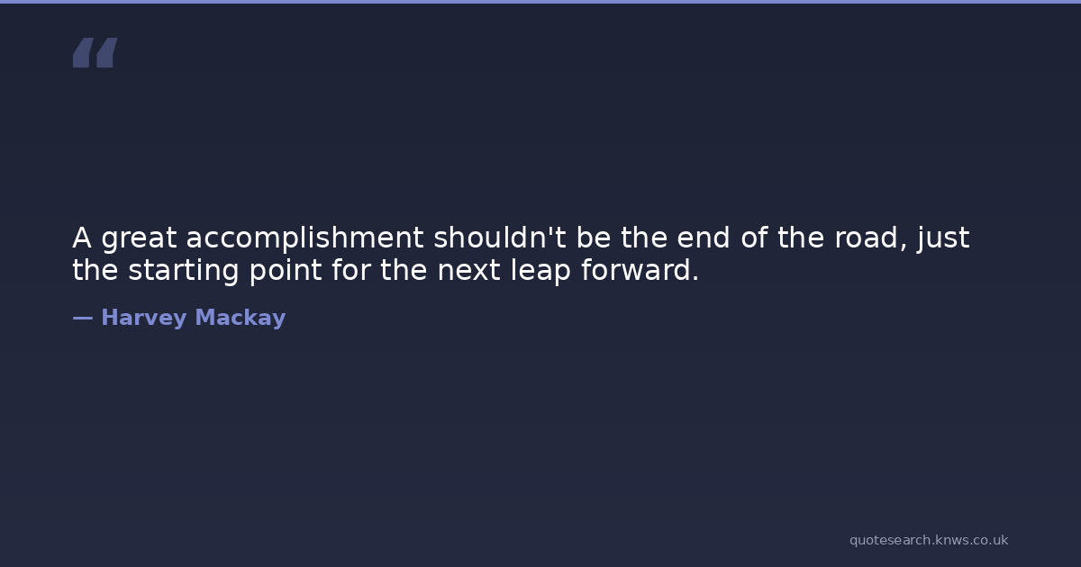 A great accomplishment shouldn't be the end of the road, just the starting point for the next leap forward.
