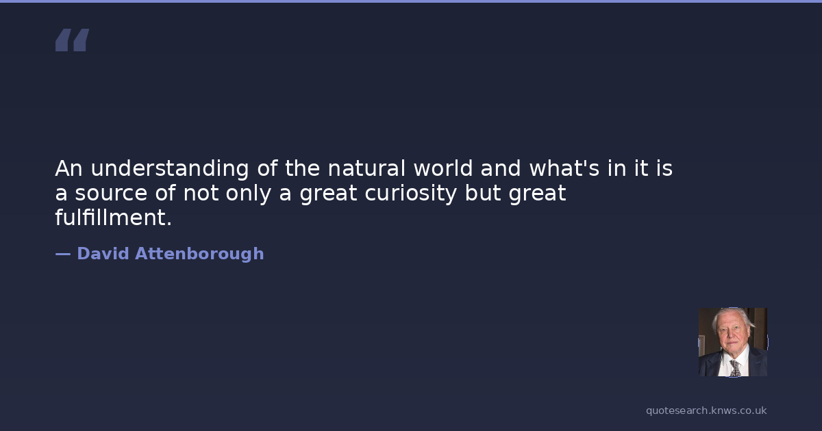 An understanding of the natural world and what's in it is a source of not only a great curiosity but great fulfillment.