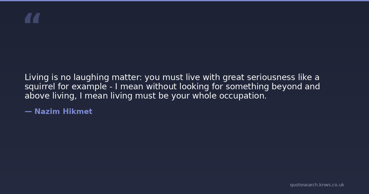 Living is no laughing matter: you must live with great seriousness like a squirrel for example - I mean without looking for something beyond and above living, I mean living must be your whole occupation.