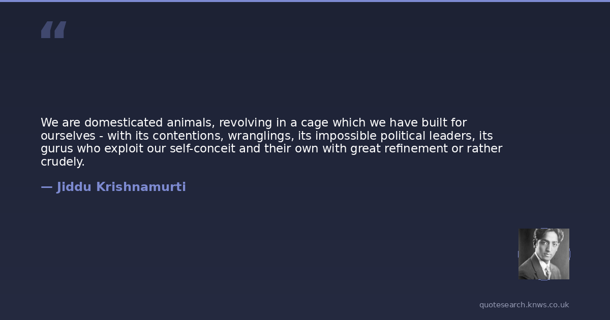 We are domesticated animals, revolving in a cage which we have built for ourselves - with its contentions, wranglings, its impossible political leaders, its gurus who exploit our self-conceit and their own with great refinement or rather crudely.