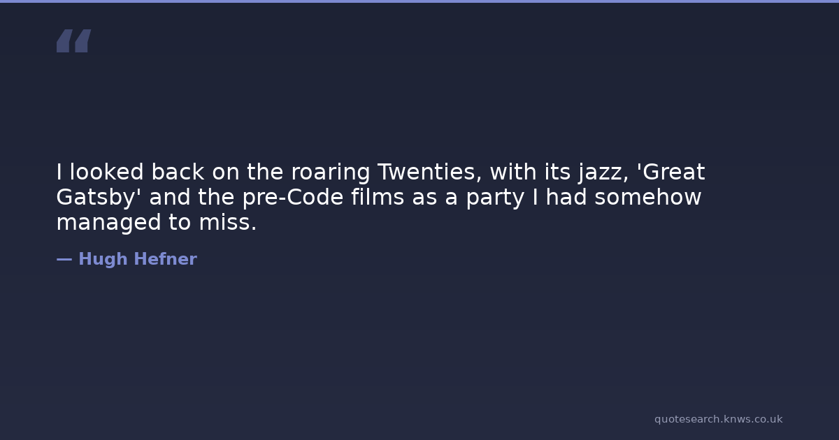 I looked back on the roaring Twenties, with its jazz, 'Great Gatsby' and the pre-Code films as a party I had somehow managed to miss.