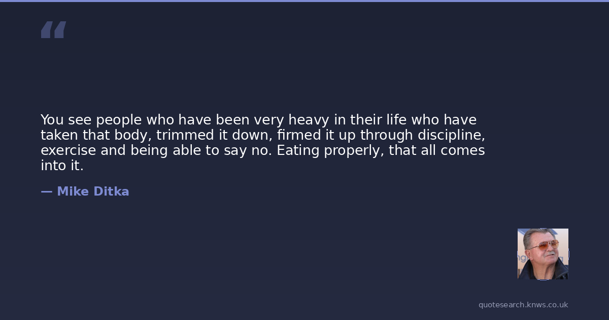 You see people who have been very heavy in their life who have taken that body, trimmed it down, firmed it up through discipline, exercise and being able to say no. Eating properly, that all comes into it.