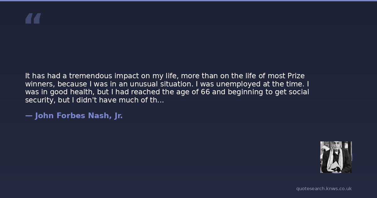 It has had a tremendous impact on my life, more than on the life of most Prize winners, because I was in an unusual situation. I was unemployed at the time. I was in good health, but I had reached the age of 66 and beginning to get social security, but I didn't have much of that. I had many years of unemployment before me.