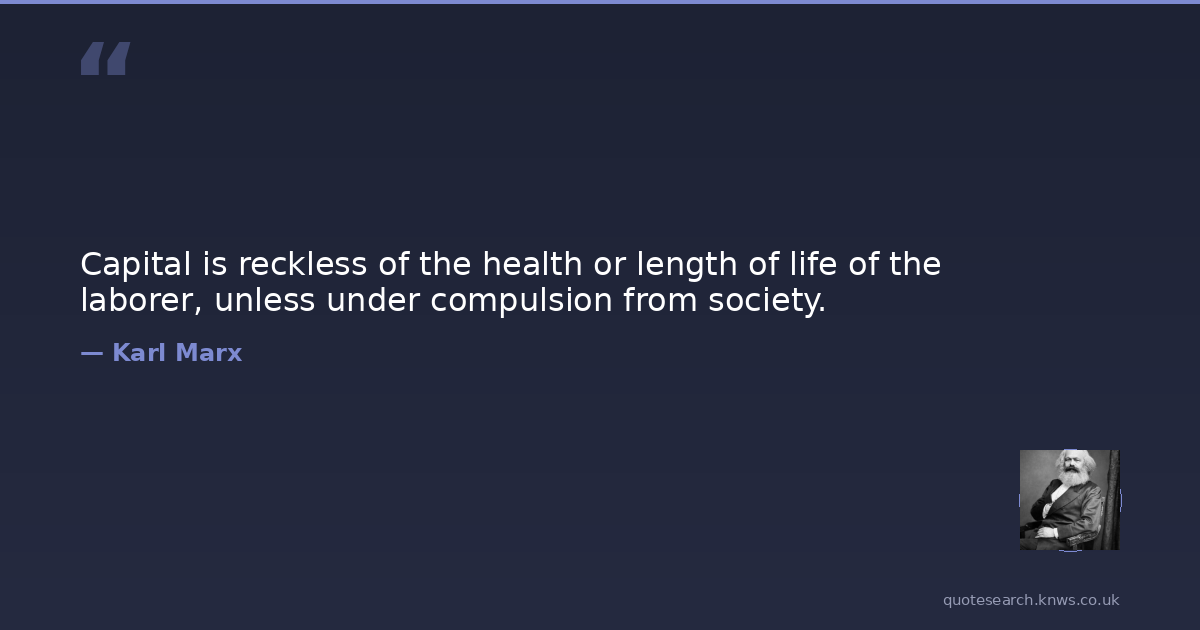 Capital is reckless of the health or length of life of the laborer, unless under compulsion from society.