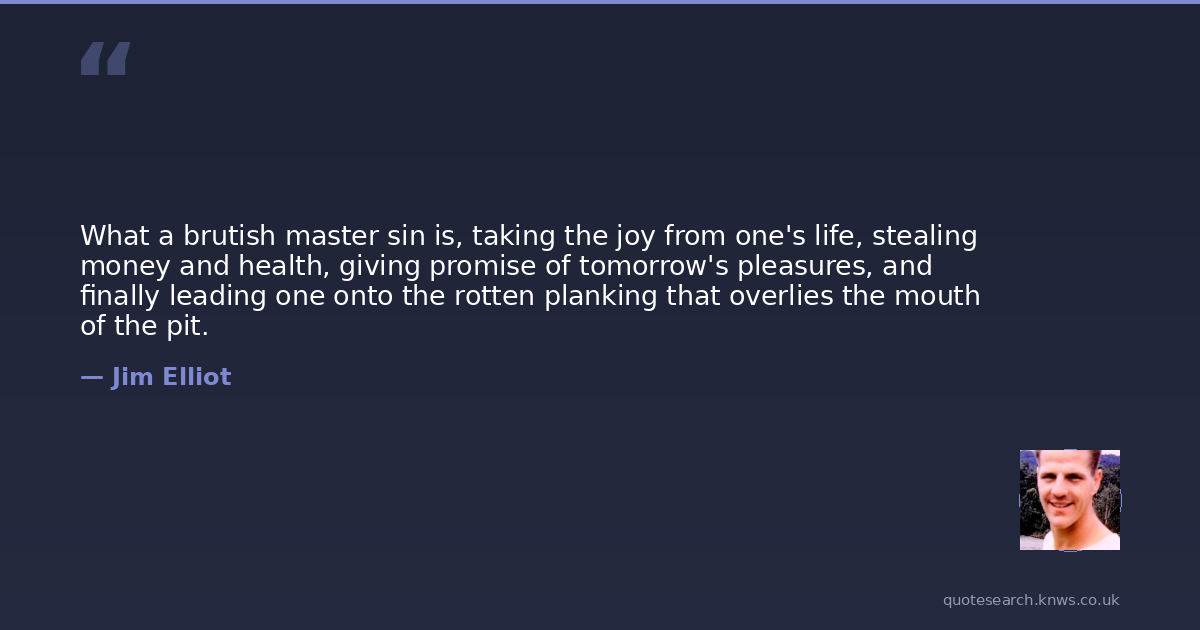 What a brutish master sin is, taking the joy from one's life, stealing money and health, giving promise of tomorrow's pleasures, and finally leading one onto the rotten planking that overlies the mouth of the pit.