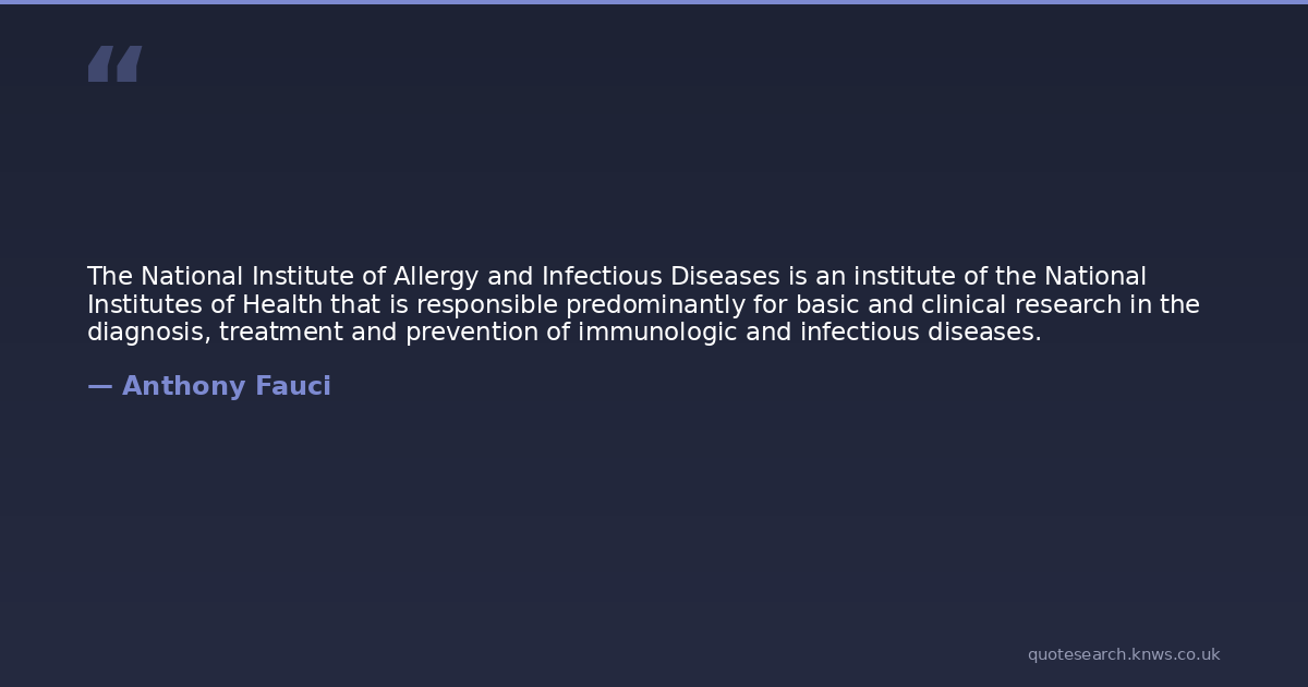 The National Institute of Allergy and Infectious Diseases is an institute of the National Institutes of Health that is responsible predominantly for basic and clinical research in the diagnosis, treatment and prevention of immunologic and infectious diseases.