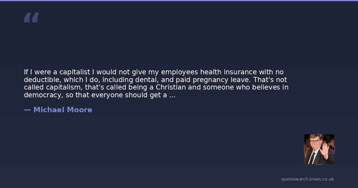 If I were a capitalist I would not give my employees health insurance with no deductible, which I do, including dental, and paid pregnancy leave. That's not called capitalism, that's called being a Christian and someone who believes in democracy, so that everyone should get a fair slice of the pie.