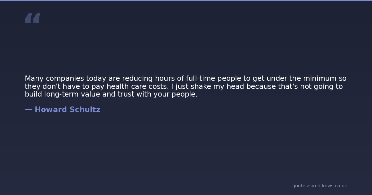 Many companies today are reducing hours of full-time people to get under the minimum so they don't have to pay health care costs. I just shake my head because that's not going to build long-term value and trust with your people.