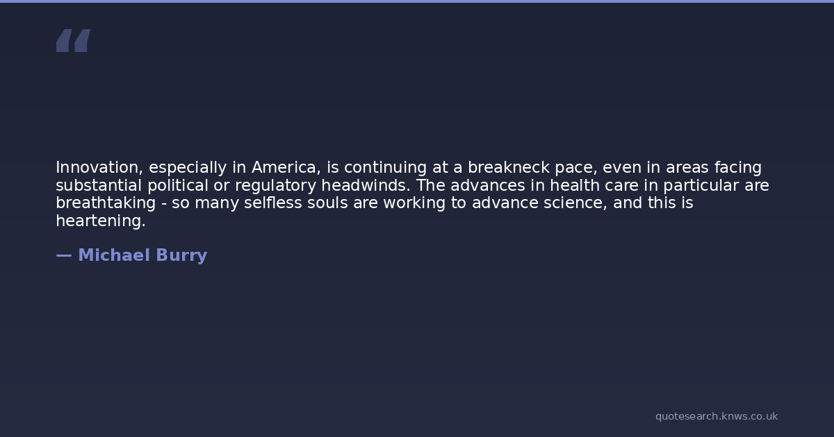 Innovation, especially in America, is continuing at a breakneck pace, even in areas facing substantial political or regulatory headwinds. The advances in health care in particular are breathtaking - so many selfless souls are working to advance science, and this is heartening.