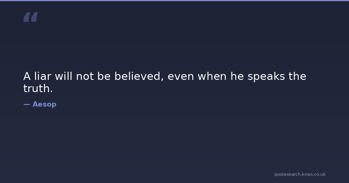 A liar will not be believed, even when he speaks the truth. Liar Will Even Download Image Share on X Share on Facebook Copy Link
