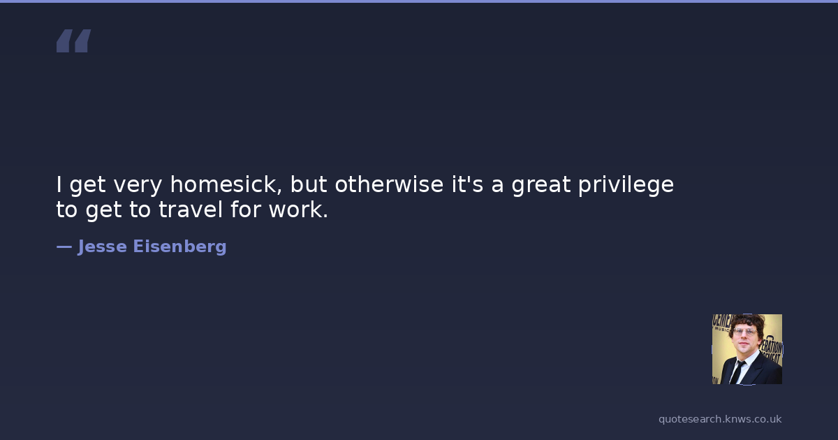 I get very homesick, but otherwise it's a great privilege to get to travel for work.
