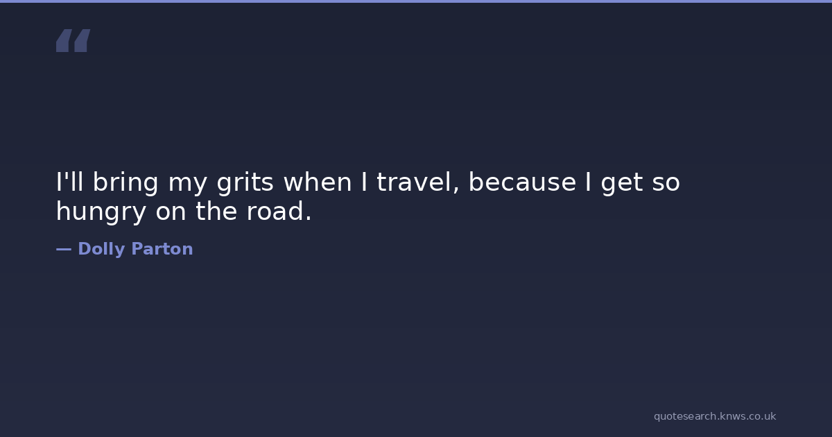 I'll bring my grits when I travel, because I get so hungry on the road. Road Hungry Bring Download Image Share on X Share on Facebook Copy Link