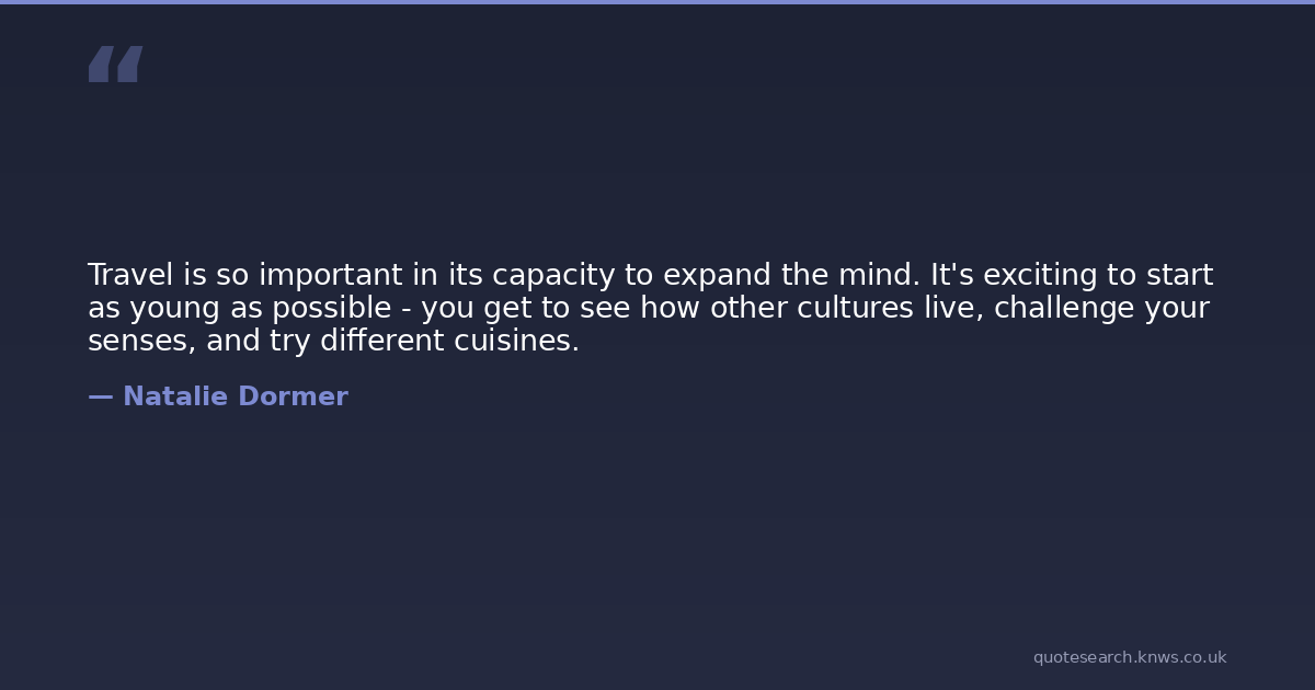 Travel is so important in its capacity to expand the mind. It's exciting to start as young as possible - you get to see how other cultures live, challenge your senses, and try different cuisines.
