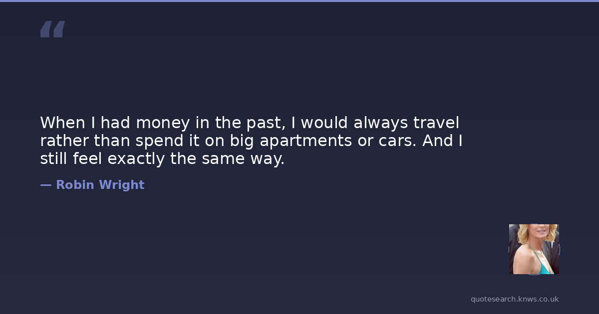 When I had money in the past, I would always travel rather than spend it on big apartments or cars. And I still feel exactly the same way.