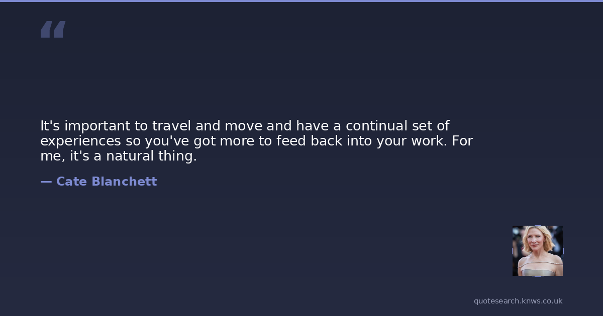 It's important to travel and move and have a continual set of experiences so you've got more to feed back into your work. For me, it's a natural thing.