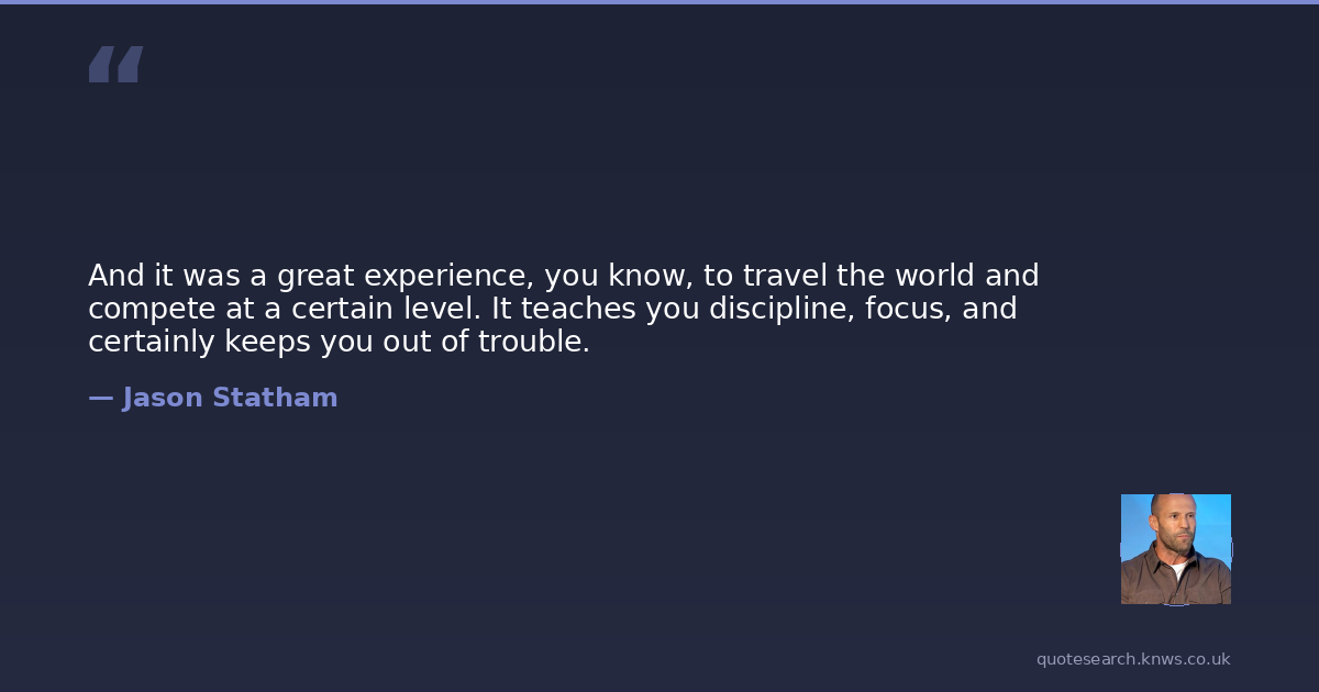 And it was a great experience, you know, to travel the world and compete at a certain level. It teaches you discipline, focus, and certainly keeps you out of trouble.