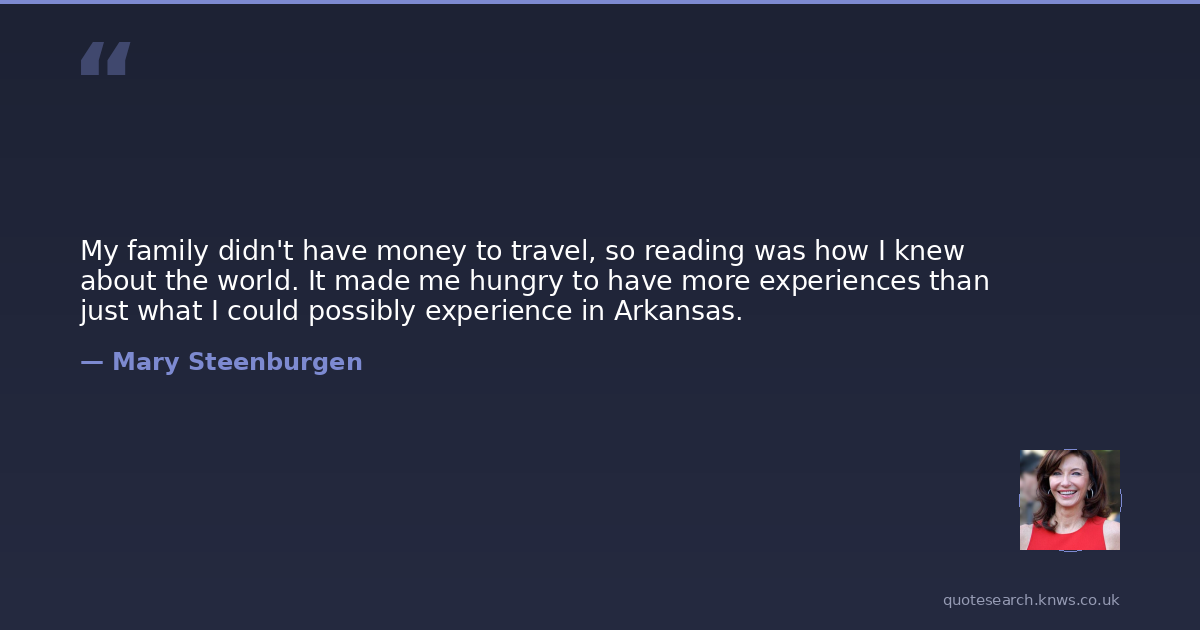 My family didn't have money to travel, so reading was how I knew about the world. It made me hungry to have more experiences than just what I could possibly experience in Arkansas.