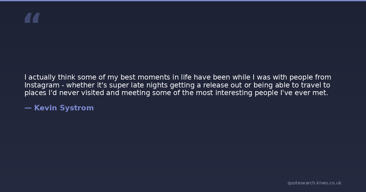 I actually think some of my best moments in life have been while I was with people from Instagram - whether it's super late nights getting a release out or being able to travel to places I'd never visited and meeting some of the most interesting people I've ever met.