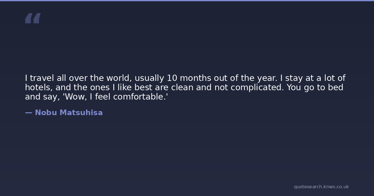 I travel all over the world, usually 10 months out of the year. I stay at a lot of hotels, and the ones I like best are clean and not complicated. You go to bed and say, 'Wow, I feel comfortable.'