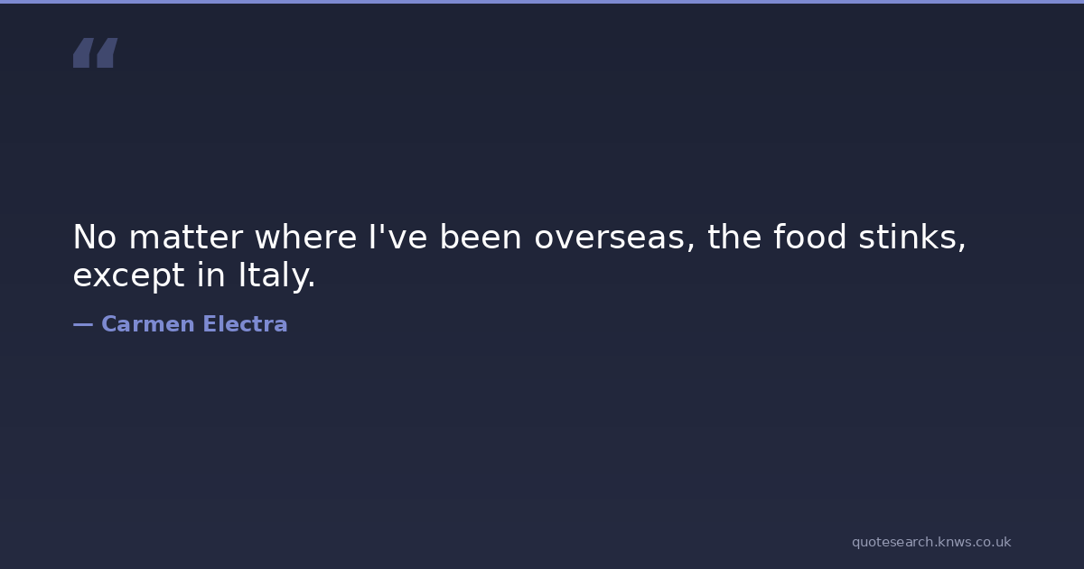 No matter where I've been overseas, the food stinks, except in Italy. Food Matter Italy Download Image Share on X Share on Facebook Copy Link