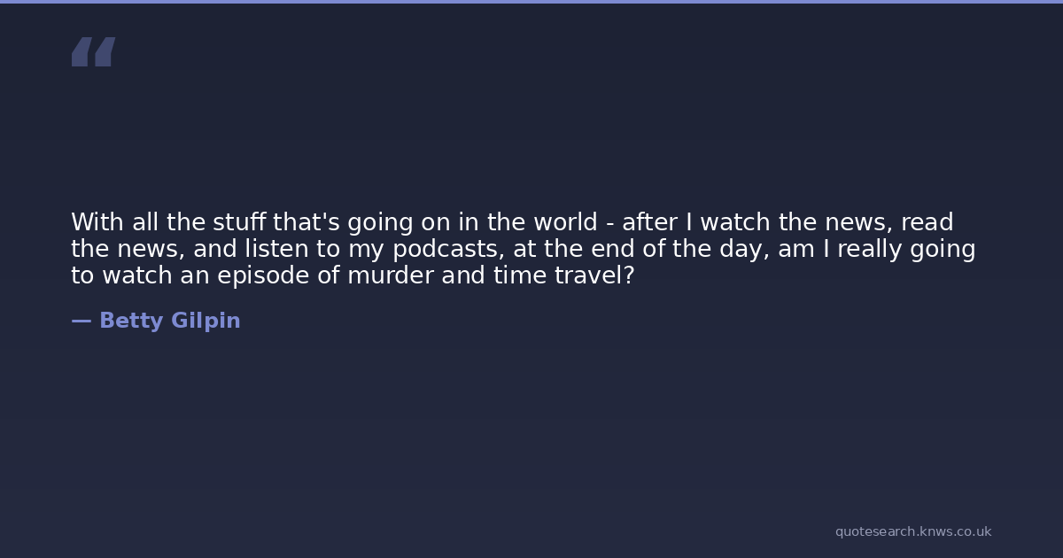 With all the stuff that's going on in the world - after I watch the news, read the news, and listen to my podcasts, at the end of the day, am I really going to watch an episode of murder and time travel?