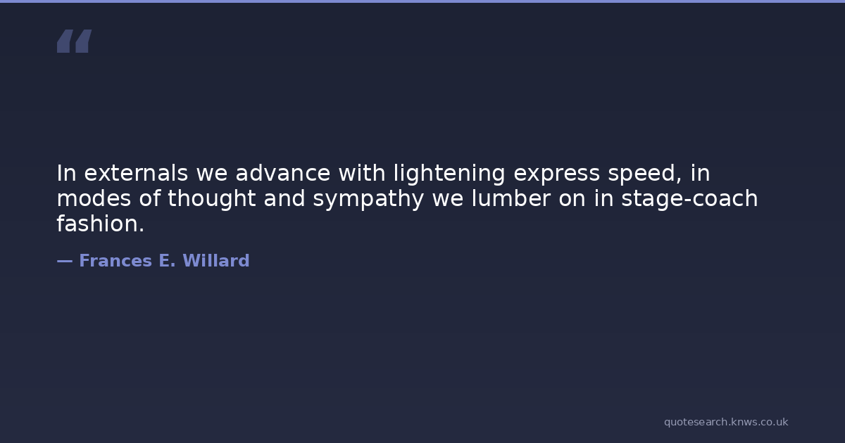 In externals we advance with lightening express speed, in modes of thought and sympathy we lumber on in stage-coach fashion. Thought Fashion Speed Download Image Share on X Share on Facebook Copy Link