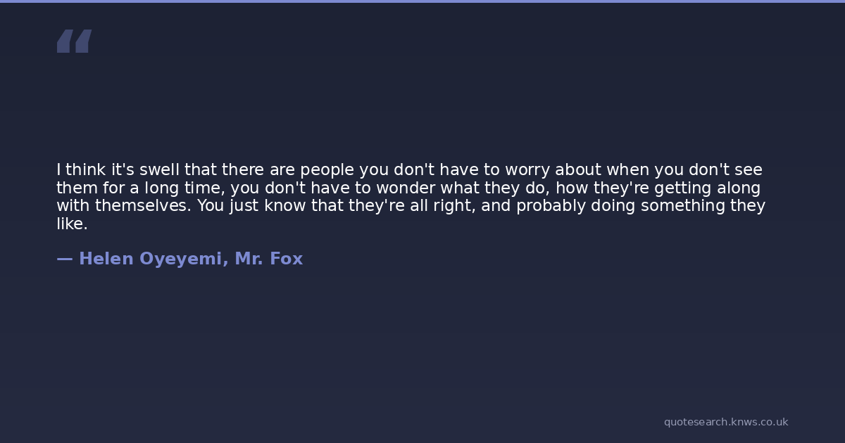 I think it's swell that there are people you don't have to worry about when you don't see them for a long time, you don't have to wonder what they do, how they're getting along with themselves. You just know that they're all right, and probably doing something they like.