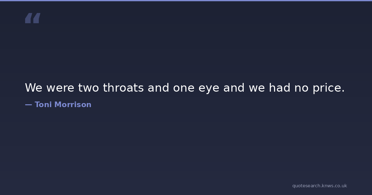 We were two throats and one eye and we had no price.