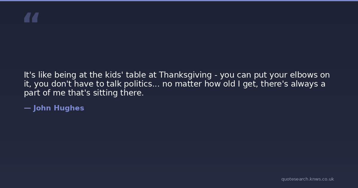 It's like being at the kids' table at Thanksgiving - you can put your elbows on it, you don't have to talk politics... no matter how old I get, there's always a part of me that's sitting there.