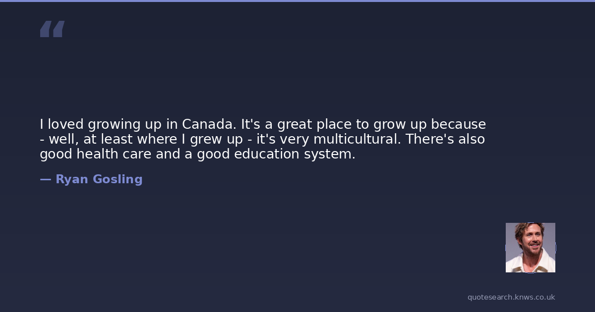 I loved growing up in Canada. It's a great place to grow up because - well, at least where I grew up - it's very multicultural. There's also good health care and a good education system.