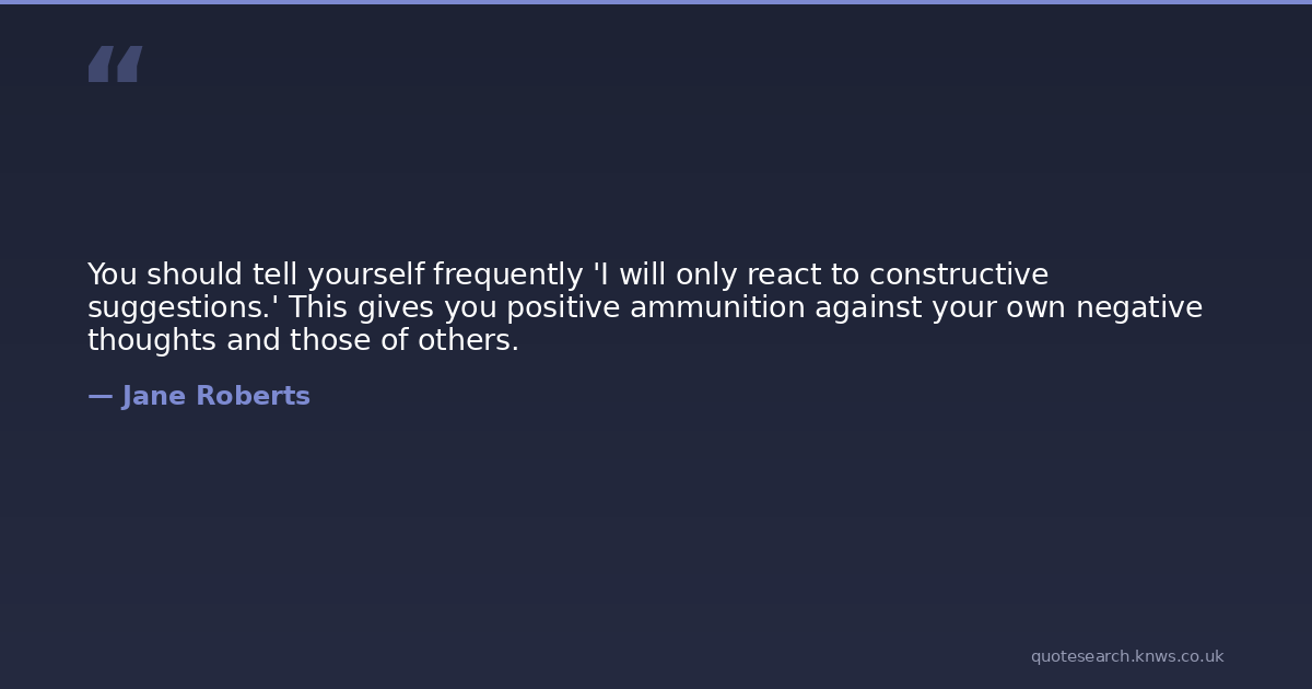 You should tell yourself frequently 'I will only react to constructive suggestions.' This gives you positive ammunition against your own negative thoughts and those of others.