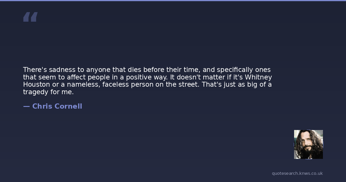 There's sadness to anyone that dies before their time, and specifically ones that seem to affect people in a positive way. It doesn't matter if it's Whitney Houston or a nameless, faceless person on the street. That's just as big of a tragedy for me.