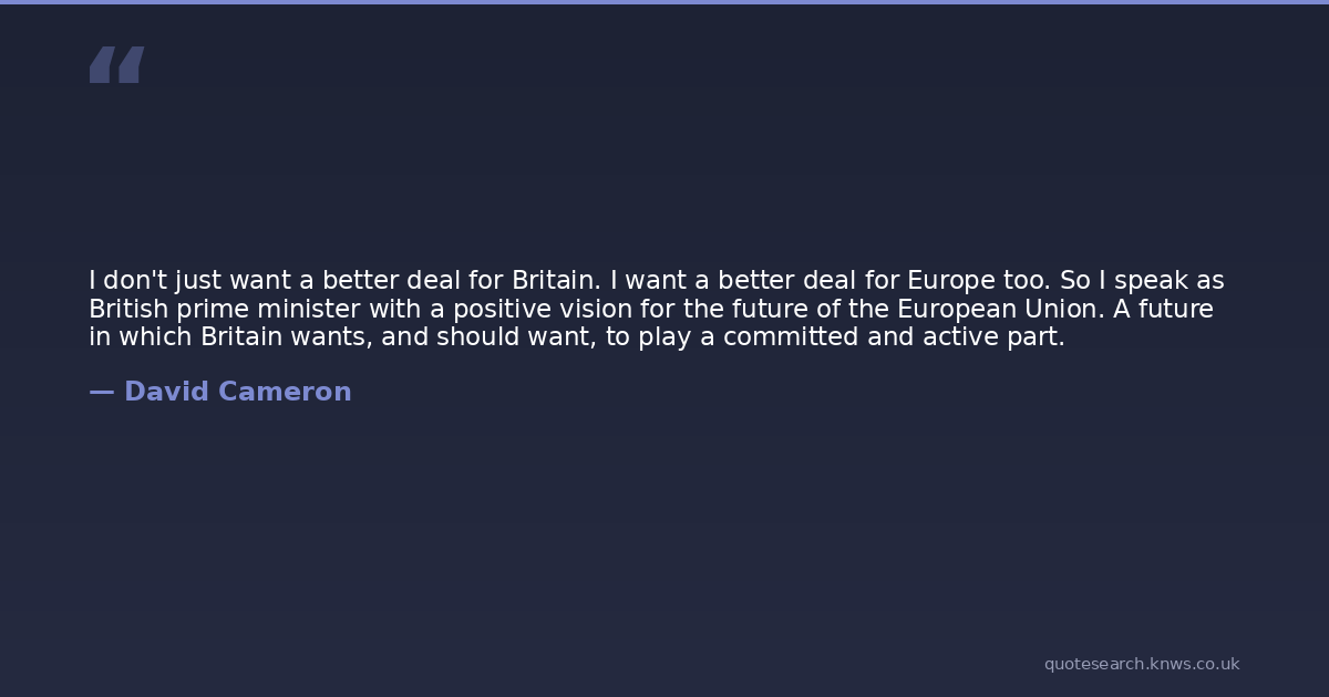 I don't just want a better deal for Britain. I want a better deal for Europe too. So I speak as British prime minister with a positive vision for the future of the European Union. A future in which Britain wants, and should want, to play a committed and active part.