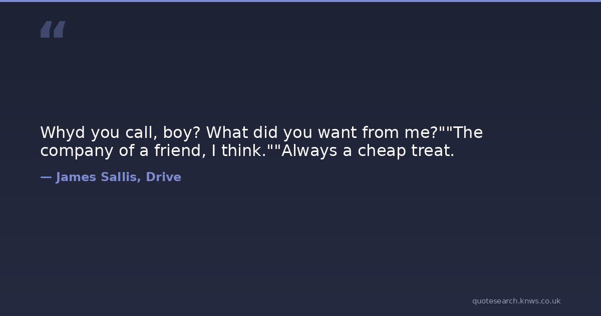 Whyd you call, boy? What did you want from me?""The company of a friend, I think.""Always a cheap treat.