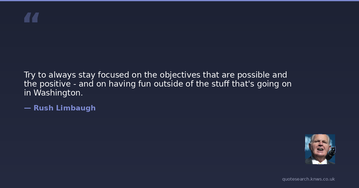 Try to always stay focused on the objectives that are possible and the positive - and on having fun outside of the stuff that's going on in Washington.