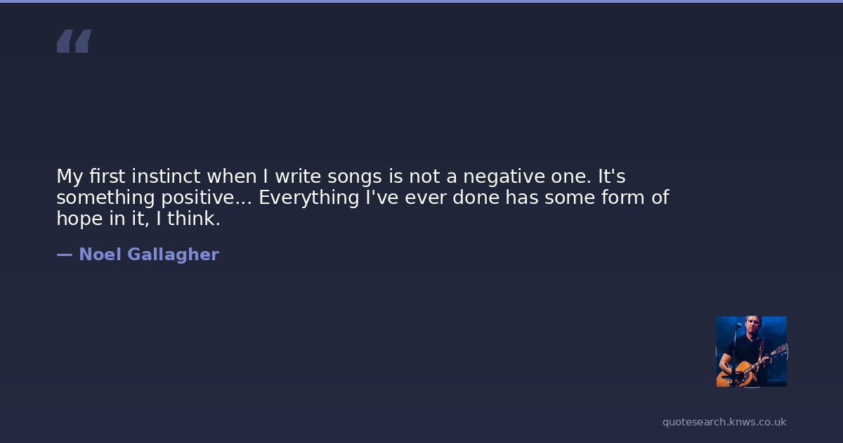 My first instinct when I write songs is not a negative one. It's something positive... Everything I've ever done has some form of hope in it, I think.