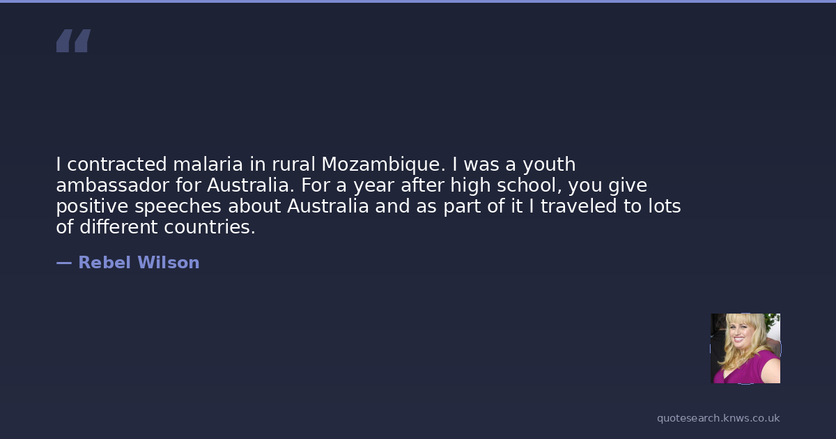 I contracted malaria in rural Mozambique. I was a youth ambassador for Australia. For a year after high school, you give positive speeches about Australia and as part of it I traveled to lots of different countries.