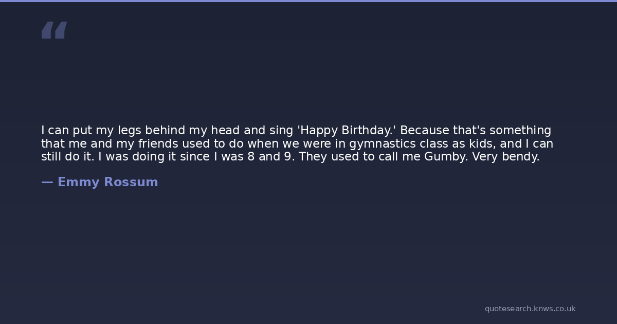 I can put my legs behind my head and sing 'Happy Birthday.' Because that's something that me and my friends used to do when we were in gymnastics class as kids, and I can still do it. I was doing it since I was 8 and 9. They used to call me Gumby. Very bendy.