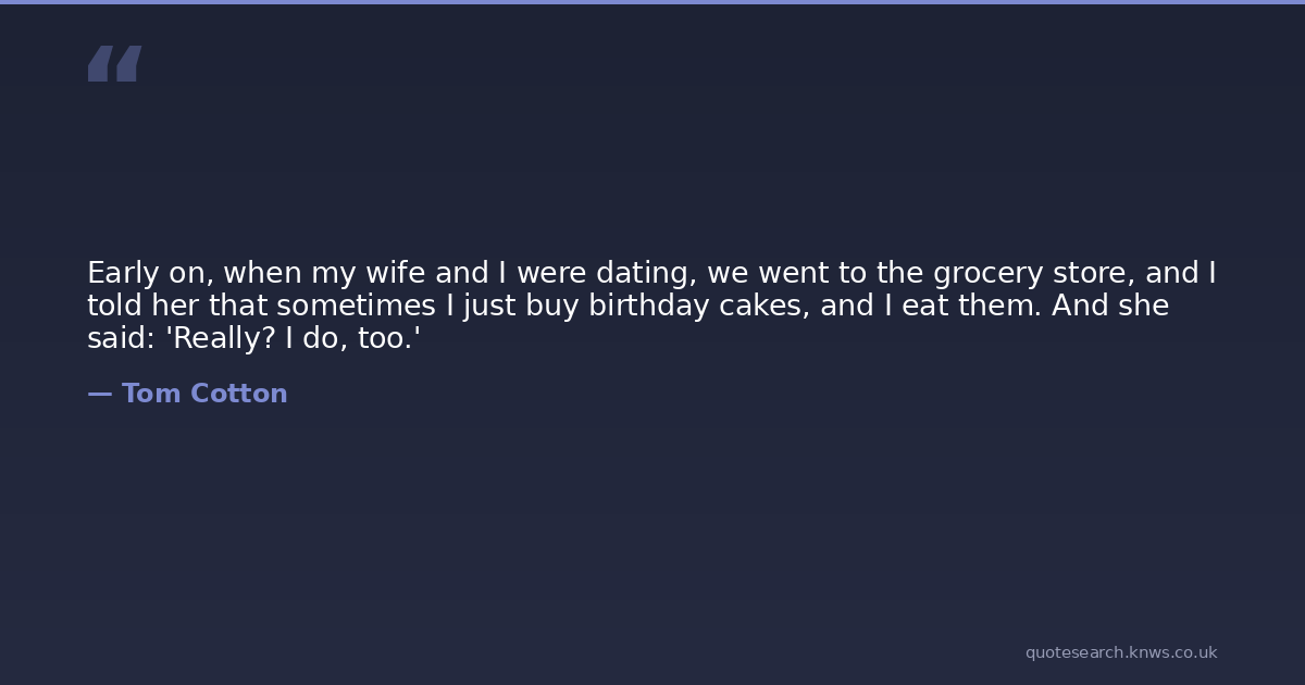 Early on, when my wife and I were dating, we went to the grocery store, and I told her that sometimes I just buy birthday cakes, and I eat them. And she said: 'Really? I do, too.'