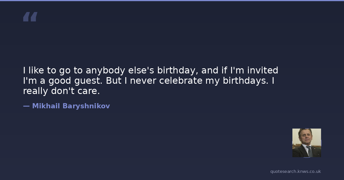 I like to go to anybody else's birthday, and if I'm invited I'm a good guest. But I never celebrate my birthdays. I really don't care.