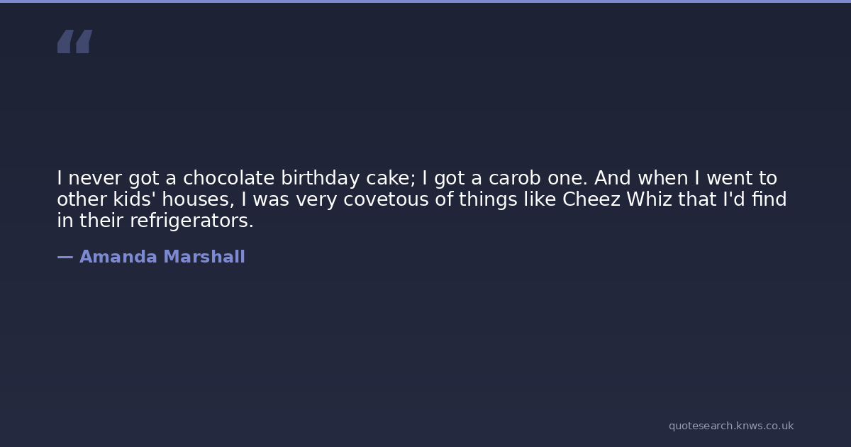 I never got a chocolate birthday cake; I got a carob one. And when I went to other kids' houses, I was very covetous of things like Cheez Whiz that I'd find in their refrigerators.