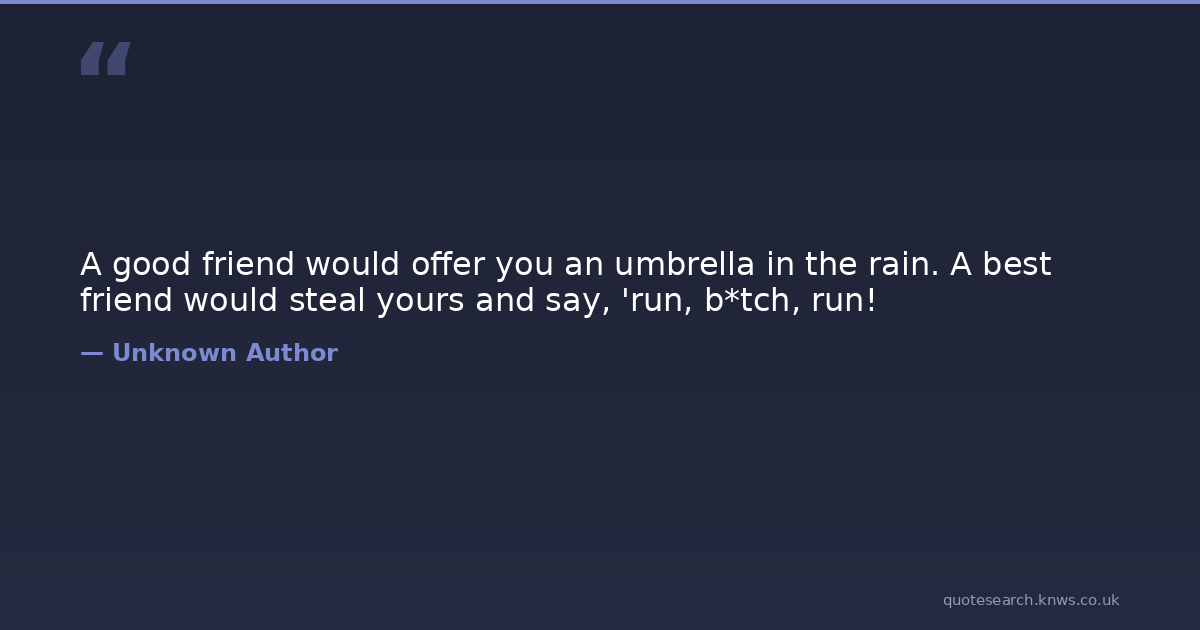 A good friend would offer you an umbrella in the rain. A best friend would steal yours and say, 'run, b*tch, run!
