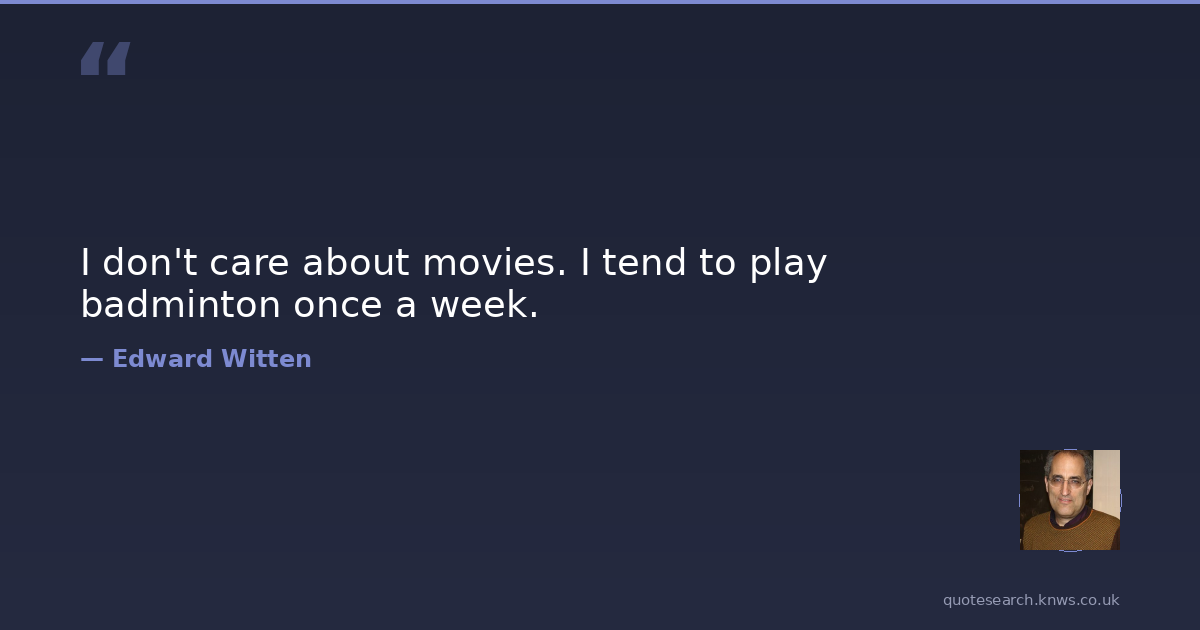 I don't care about movies. I tend to play badminton once a week.