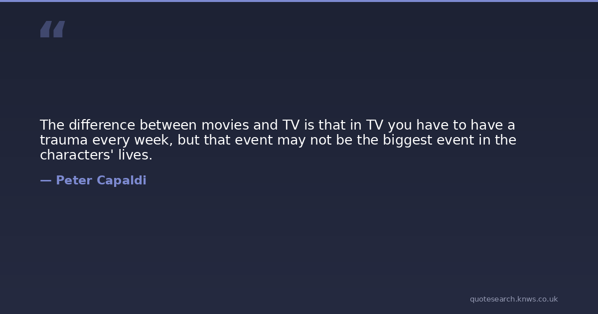 The difference between movies and TV is that in TV you have to have a trauma every week, but that event may not be the biggest event in the characters' lives.