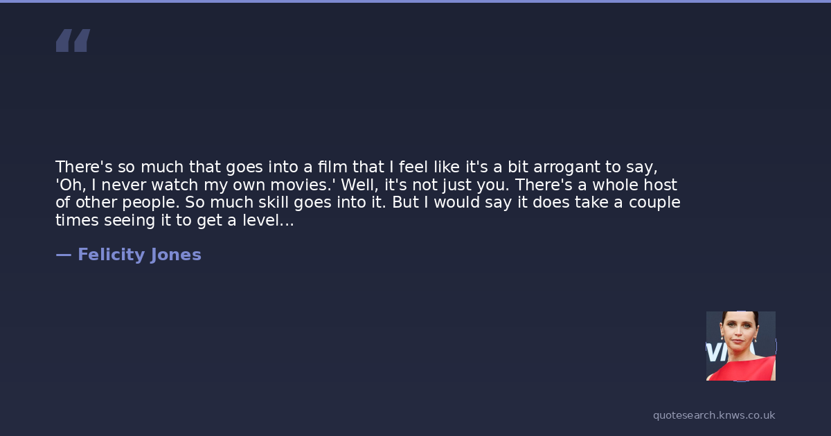 There's so much that goes into a film that I feel like it's a bit arrogant to say, 'Oh, I never watch my own movies.' Well, it's not just you. There's a whole host of other people. So much skill goes into it. But I would say it does take a couple times seeing it to get a level of perspective.